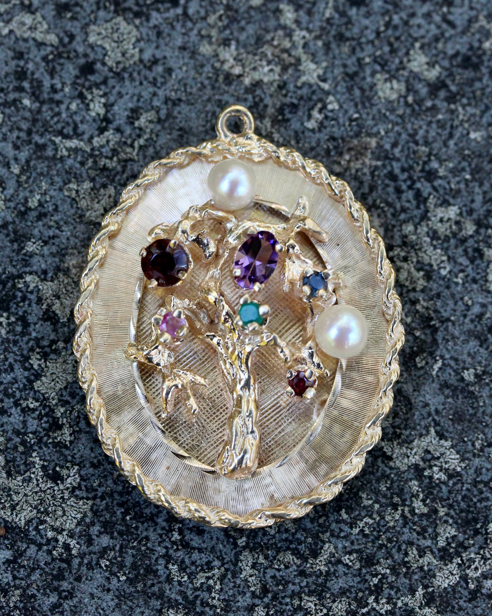 VINTAGE Oval Tree of Life Charm / Pendant featuring Genuine Stones and a Pearl accent