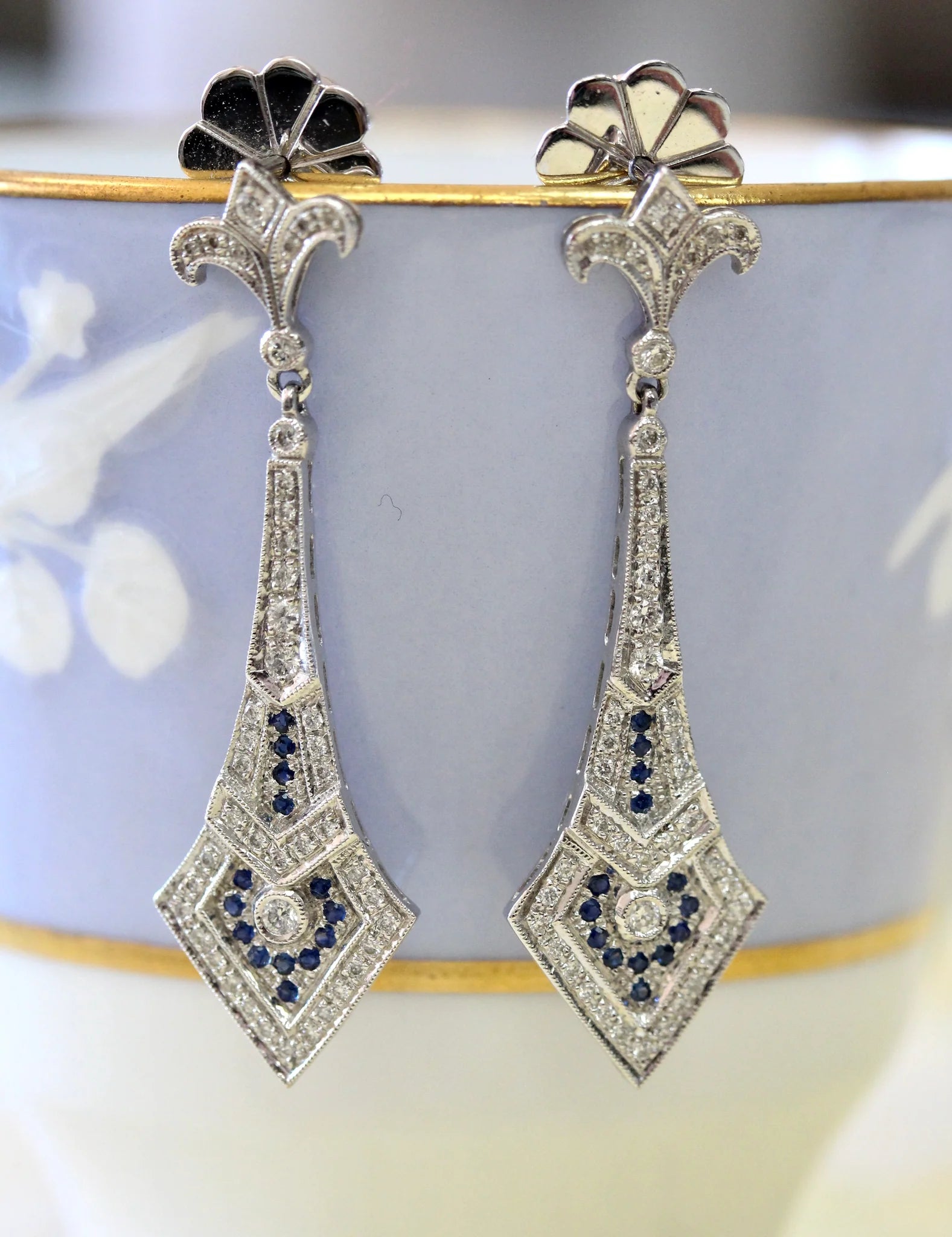 Diamond & Sapphire Drop Style Earrings
