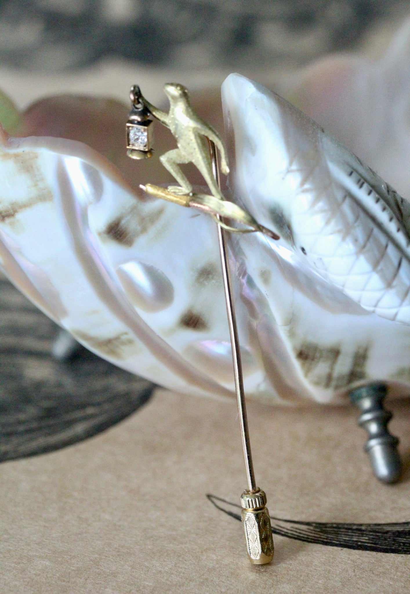 Frog Pin with European Cut Diamond ~ VINTAGE