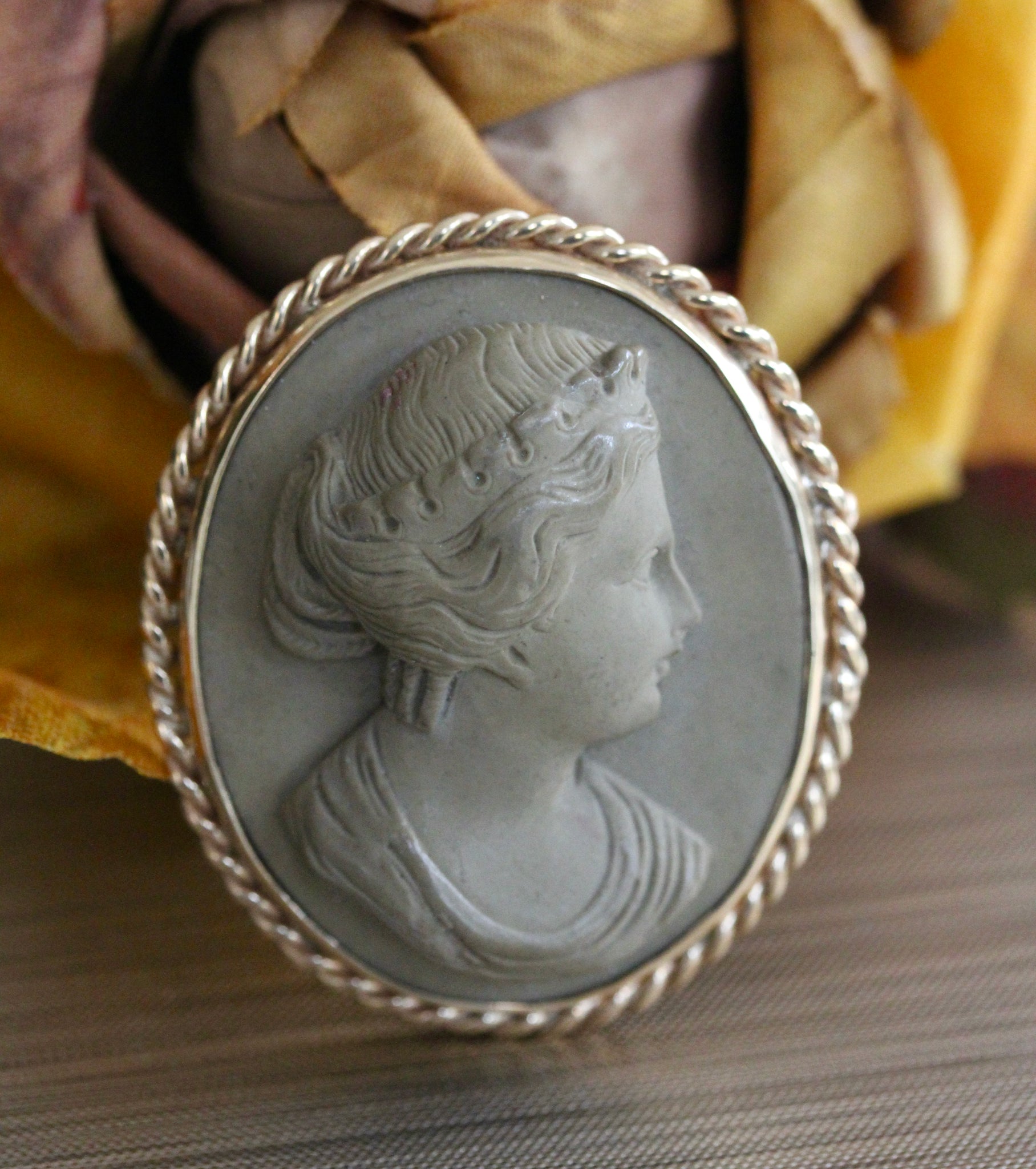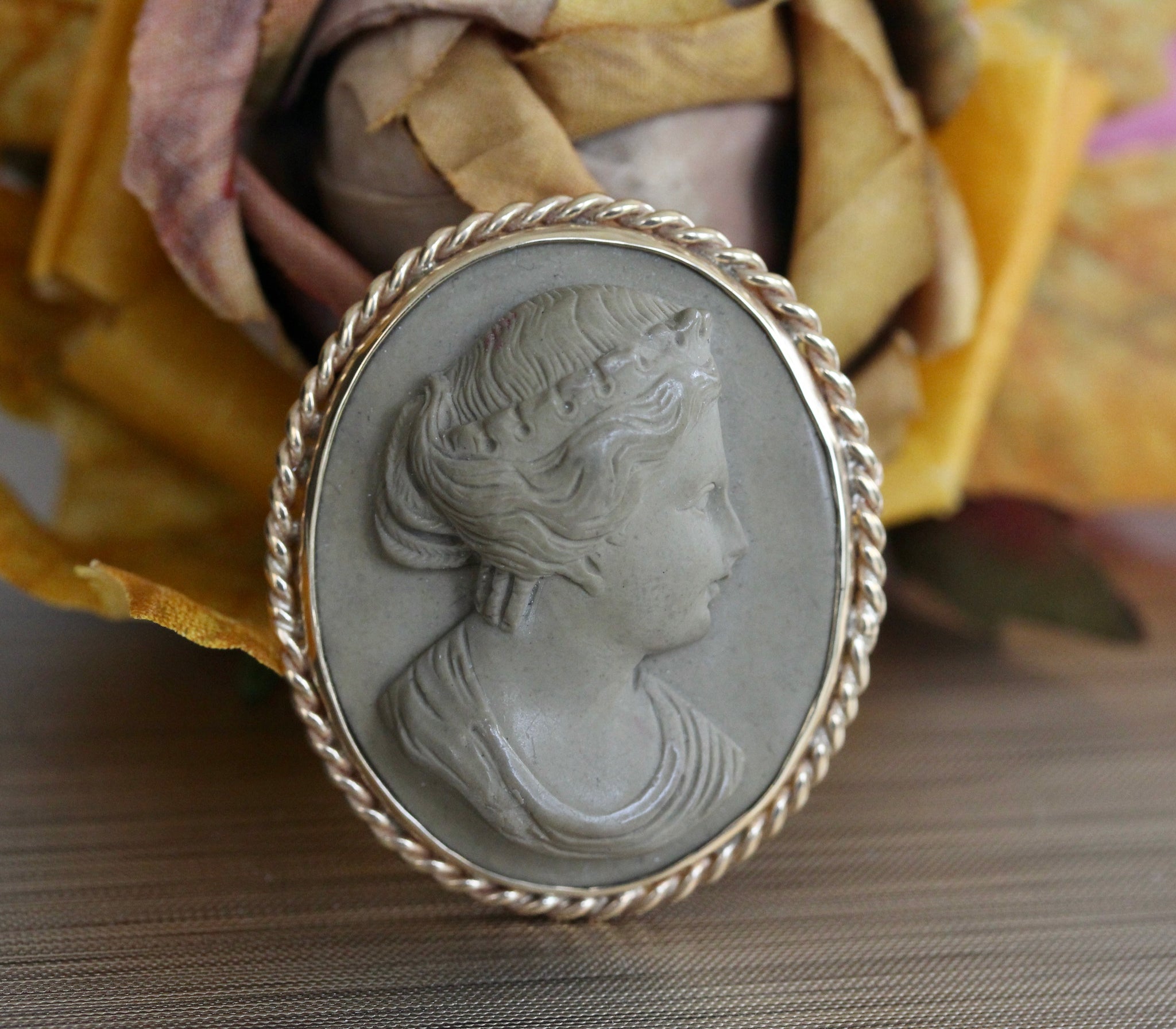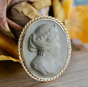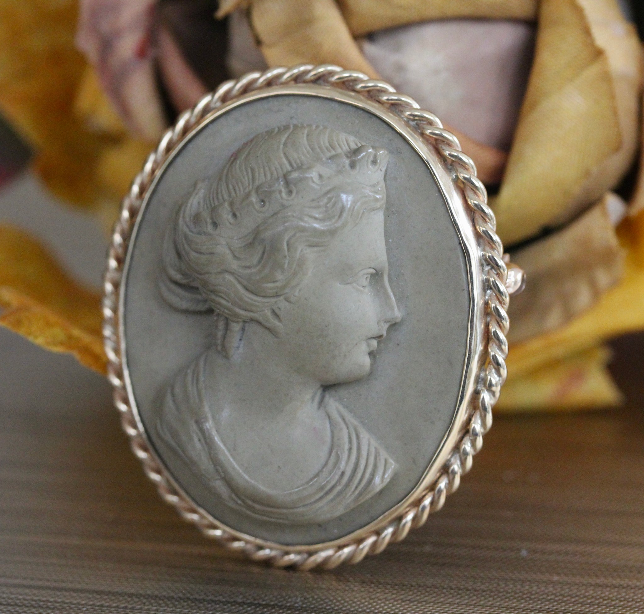 Fabulous Lava Cameo Brooch with a decorative Gold border